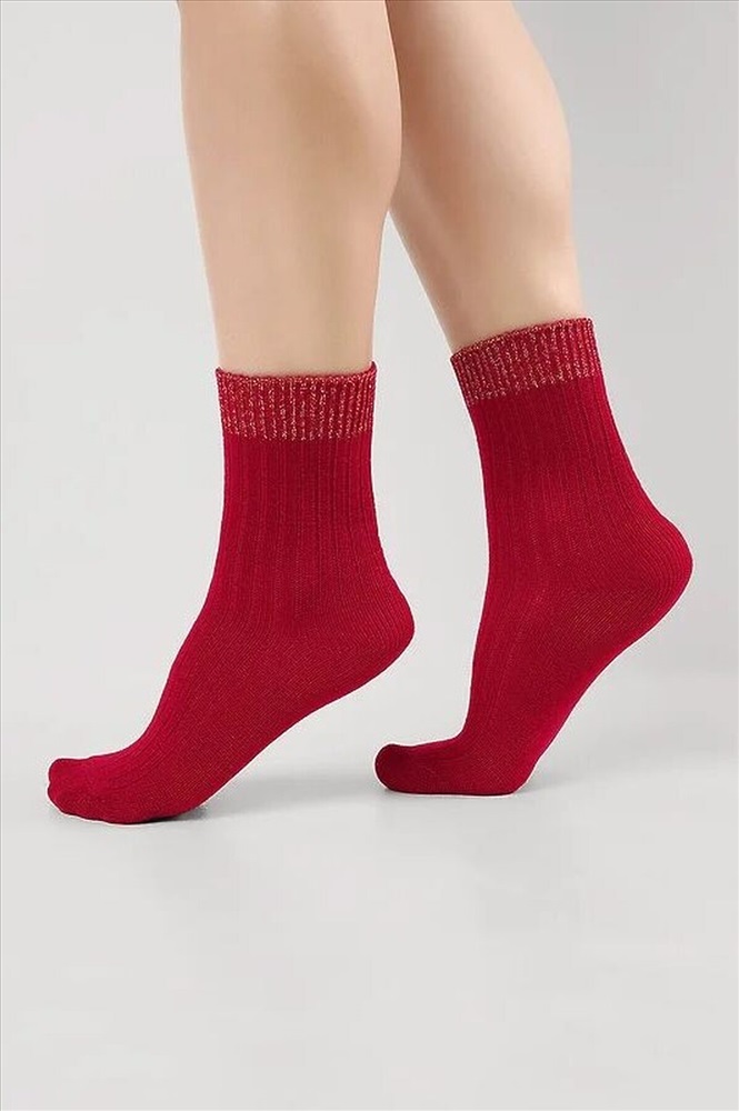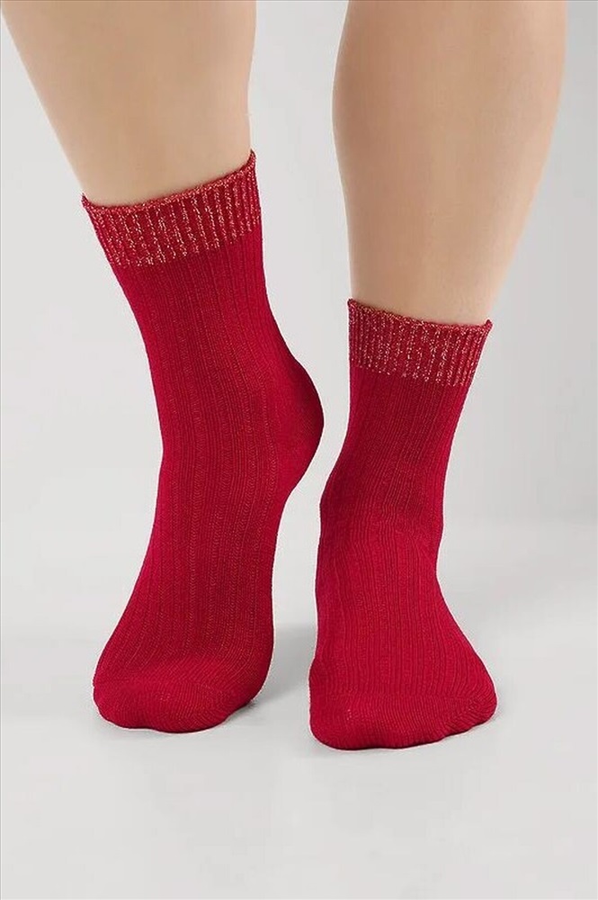 Женские теплые носки в рубчик, резинка украшена люрексом