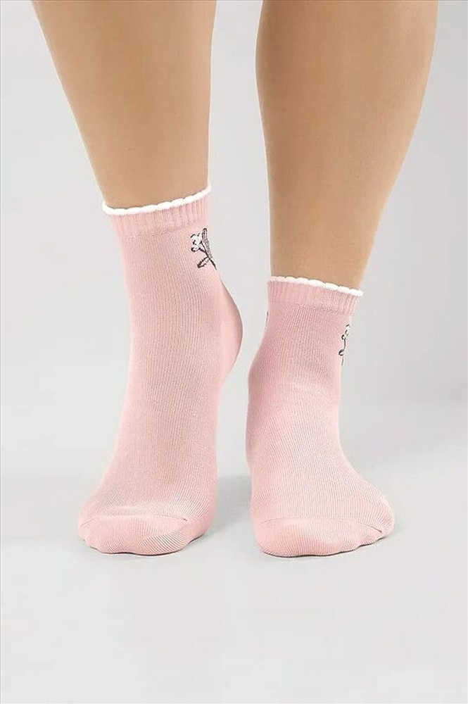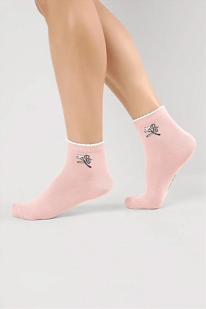 Укороченные женские носки с цветочком на паголенке