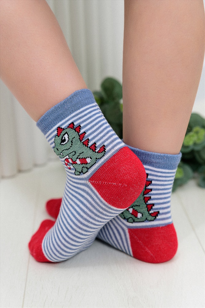 Стиль: домашний | повседневный Детские носки с рисунком. Мягкая модель, очень комфортная и подходит для повседневной носки. Носочки в ярких цветах с веселым рисунком дракончика поднимут настроение как деткам, так и их родителям.