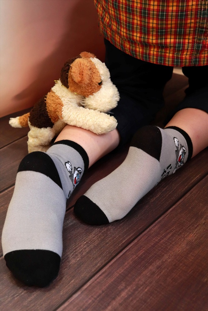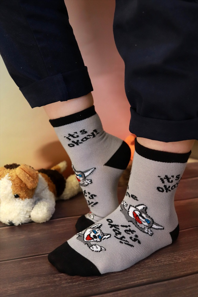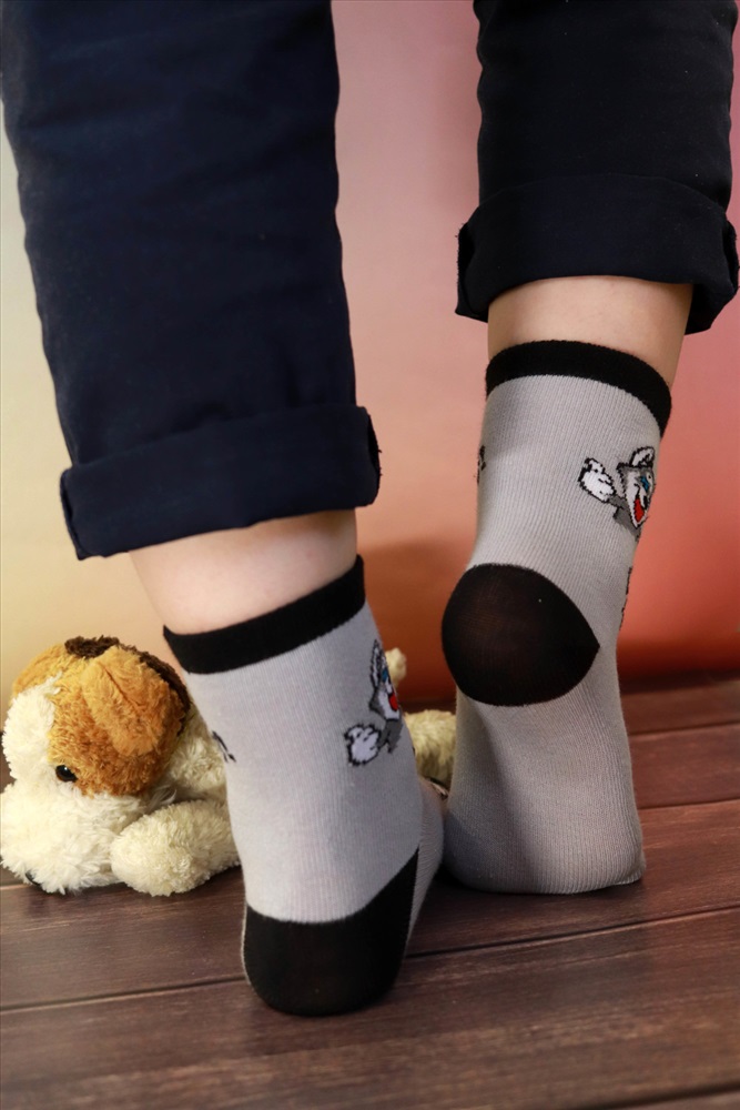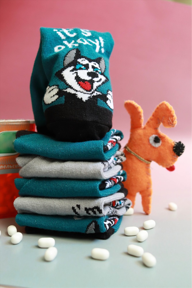 Сезонность: лето | осень | весна | зима Набор детских носочков с очаровательными собачками хаски. В упаковке 3 пары - по 1 паре каждого цвета