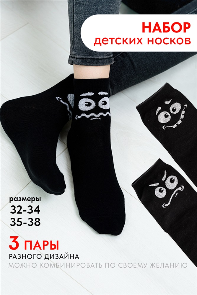 Стиль: повседневный -Детские носки с забавными рожицами на паголенке. Комплект 3 пары носков, на каждом свое изображение.