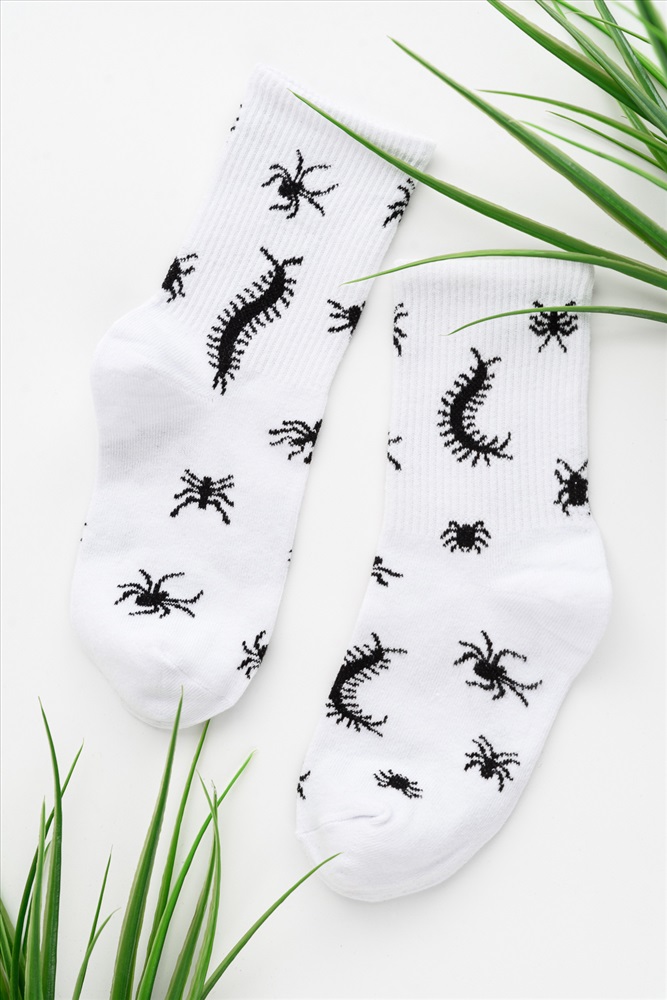 Стиль: повседневный Комплект носков с резинкой по всей верхней части. По всему носку изображение насекомых. В комплекте 2 пары.