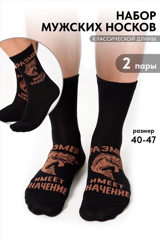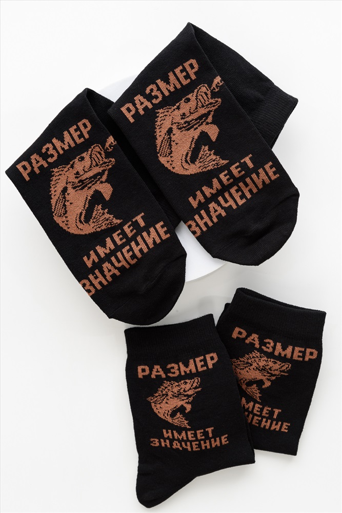Стиль: повседневный | туризм, охота, рыбалка Комплект 2 пары мужских носков. Отличный подарок для мужчин, братьев, дедушек и друзей на праздник. На верхней части носка изображение рыбы и надпись Размер имеет значение