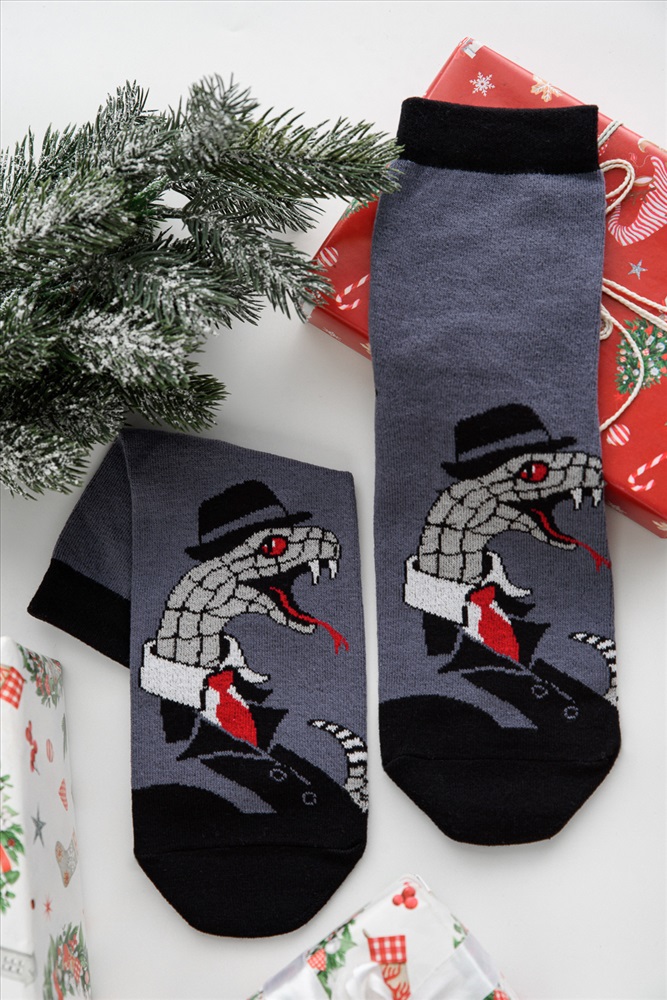 Модель: Носки мужские Майкл комплект 1 пара Тип товара: носки стандарт Материал: чулочно-носочный трикотаж | чулочно-носочный трикотаж Бренд: Amichevole Berchelli Назначение: для офиса Рисунок: хищники | новогодний | разное | зверюшки Сезонность: лето | осень | весна | зима Стиль: офисный | повседневный Оригинальные мужские новогодние носки. В комплекте 1 пара. На основной части носка изображение символа будущего года Змеи. Таблица размеров и веса