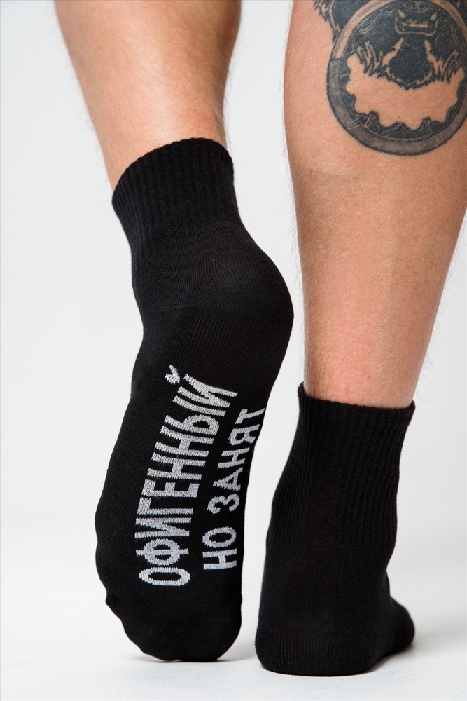 Состав: 77% х/б 21% ПА 2% эластан Модель: Носки мужские Офигенный Тип товара: носки стандарт Материал: чулочно-носочный трикотаж | чулочно-носочный трикотаж Бренд: Amichevole Berchelli Рейтинг: Рейтинг 4 и выше Рисунок: надпись Сезонность: лето | осень | весна | зима Стиль: повседневный Мужские носки в комплекте 1 пара. Широкая резинка по всей верхней части носка. Надпись на стопе Офигенный, но занят Таблица размеров и веса