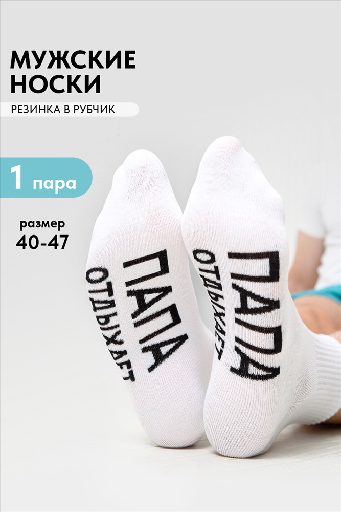Состав: 77% х/б 21% ПА 2% эластан Модель: Носки мужские Папа отдыхает Тип товара: носки высокие Материал: чулочно-носочный трикотаж | чулочно-носочный трикотаж Бренд: Amichevole Berchelli Рейтинг: Рейтинг 4 и выше Рисунок: надпись Сезонность: лето | осень | весна | зима Стиль: повседневный Мужские носки, комплект 1 пара. Широкая резинка по всей верхней части. Надпись на стопе Папа отдыхает Таблица размеров и веса