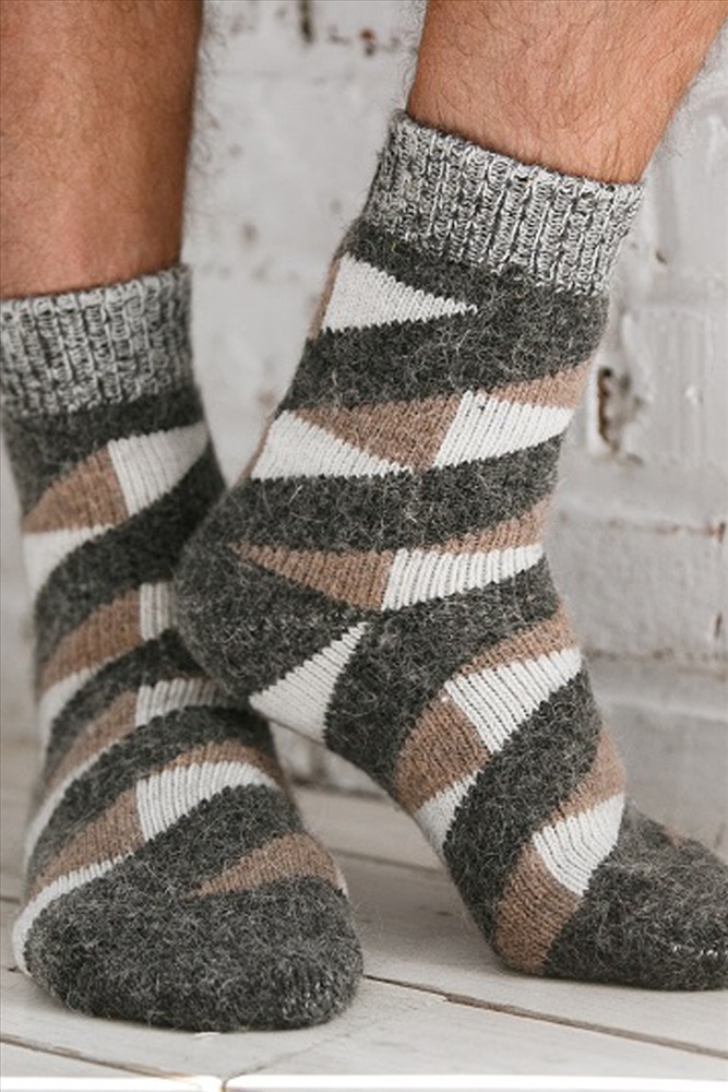 Стиль: домашний | туризм, охота, рыбалка Здоровье человека идёт от ног, поэтому важно держать ноги в тепле не только зимой, но и межсезонье. Теплые вязаные носки с натуральной шерстью в составе согреют и подарят ощущение комфорта. Зимние носки мягкие и неколючие. Они плотно облегают ногу, но резинка не давит, удобны на каждый день, сохраняют яркость цвета и первоначальную форму после многочисленных стирок. Носки долговечны, они будут согревать вас несколько зимних сезонов. Шерстяные носки станут спасением в самые сильные морозы. Ногам будет комфортно даже при температуре до -40С. Шерсть имеет уникальную способность быстро согревать и длительное время поддерживать правильную терморегуляцию. Она хорошо пропускает воздух и позволяет коже дышать. Также быстро отводит влагу, оставаясь при этом сухой. Шерстяные носки отлично тянутся, благодаря чему не сковывают движений. Благодаря полиамидным нитям имеют повышенную прочность изделия от истираний и разрывов, что значительно увеличивает продолжительность их службы. Шерстяные носки достаточно плотные, при этом мягкие, не раздражают, не вызывают зуда и не колются. Имеют широкую резинку и связаны с учетом анатомической формы ступни и голеностопа. В составе натуральной шерсти находятся природные соединения и ланолин, обладающие антисептическим эффектом. Это позволяет им оставаться свежими даже после нескольких дней ношения. Носочки с очаровательным зимним рисунком идеально подойдут для уютной новогодней фотосессии, для себя или в подарок близким на Новый год и другие праздники. Теплые носки станут прекрасной покупкой на зимний сезон. Подходят для занятия спортом: под коньки, лыжные и треккинговые ботинки. Они согревающие, поэтому незаменимы для рыбалки, охоты или во время прогулок на свежем воздухе. Теплые вязаные носки будут отличным подарком папе, дедушке, мужу, сыну, другу или коллеге. Особенно оценят данный подарок пожилые мужчины в холодные осенние и зимние вечера на даче или дома, кто имеет малоподвижную работу или часто находится на сквозняках.