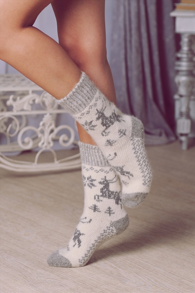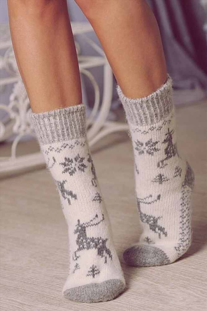Состав: 70% шерсть, 20% акрил, 10% полиамид Модель: Носки шерстяные женские Лапландия Тип товара: носки шерстяные Материал: вязаный трикотаж | вязаный трикотаж Бренд: Айлери Назначение: для дома НДС: Без НДС Особенности: вязаные изделия Рисунок: новогодний | зверюшки Сезонность: осень | весна | зима Стиль: домашний | повседневный Здоровье человека идёт от ног, поэтому важно держать ноги в тепле не только зимой, но и межсезонье. Теплые вязаные носки с натуральной шерстью в составе согреют и подарят ощущение комфорта. Зимние носки мягкие и неколючие. Они плотно облегают ногу, но резинка не давит, удобны на каждый день, сохраняют яркость цвета и первоначальную форму после многочисленных стирок. Носки долговечны, они будут согревать вас несколько зимних сезонов. Шерстяные носки станут спасением в самые сильные морозы. Ногам будет комфортно даже при температуре до -40С. Шерсть имеет уникальную способность быстро согревать и длительное время поддерживать правильную терморегуляцию. Она хорошо пропускает воздух и позволяет коже дышать. Также быстро отводит влагу, оставаясь при этом сухой. Шерстяные носки отлично тянутся, благодаря чему не сковывают движений. Благодаря полиамидным нитям имеют повышенную прочность изделия от истираний и разрывов, что значительно увеличивает продолжительность их службы. Шерстяные носки достаточно плотные, при этом мягкие, не раздражают, не вызывают зуда и не колются. Имеют широкую резинку и связаны с учетом анатомической формы ступни и голеностопа. В составе натуральной шерсти находятся природные соединения и ланолин, обладающие антисептическим эффектом. Это позволяет им оставаться свежими даже после нескольких дней ношения. Носочки с очаровательным зимним рисунком идеально подойдут для уютной новогодней фотосессии, для себя или в подарок близким на Новый год и другие праздники. Теплые носки станут прекрасной покупкой на зимний сезон. Подходят для занятия спортом: под коньки, лыжные и треккинговые ботинки. Они согревающие, поэтому незаменимы для рыбалки, охоты или во время прогулок на свежем воздухе. Теплые вязаные носки будут отличным подарком маме, бабушке, жене, подруге или коллеге. Особенно оценят данный подарок пожилые бабушки в холодные осенние и зимние вечера на даче или дома, кто имеет малоподвижную работу или часто находится на сквозняках. Таблица размеров и веса