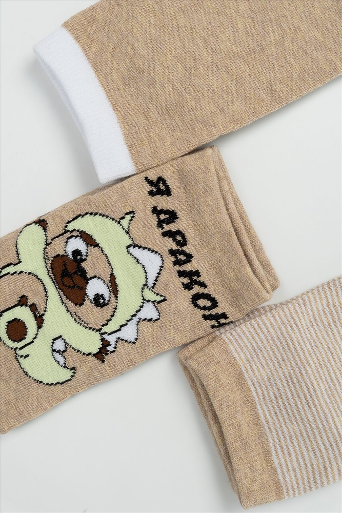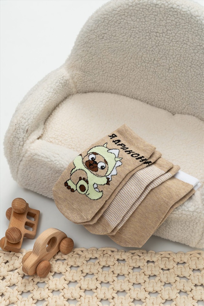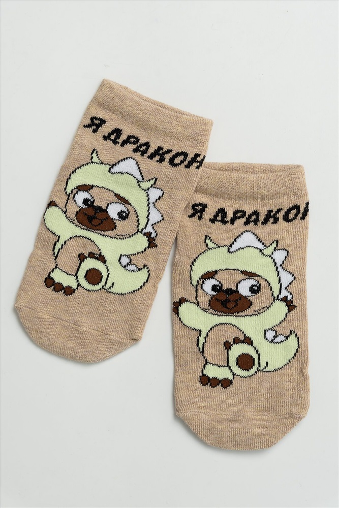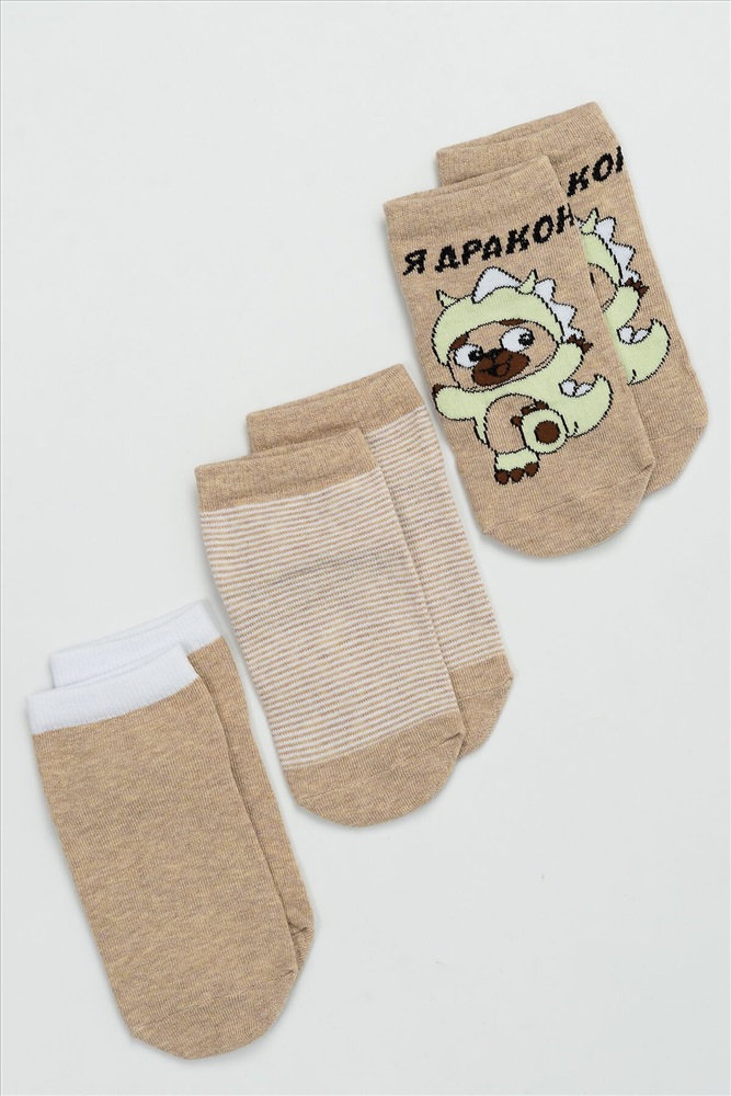 ID товара: 911008 Состав: 76% Хлопок, 22% Полиамид, 2% Эластан Сезон: Весна/Лето Рисунок: Фантазийный Основная ткань: Хлопок Вид носков/гольф: Фантазийные Вид ткани: Чулочно-носочный трикотаж Страна бренда: Россия Страна производства: Россия Детские носочки, в комплекте 3 пары одной расцветки. Одна пара однотонная, вторая в полоску, третья - с изображением дракона. Комментарии к товару