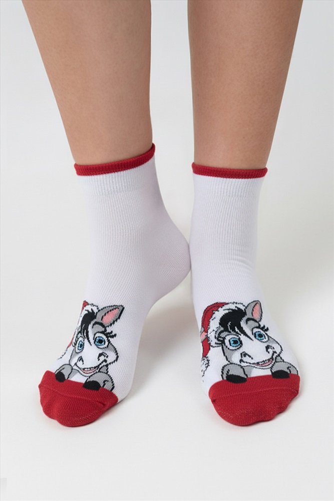 Состав: 80% х/б 18% ПА 2% эластан Модель: Носки женские Бурка Тип товара: носки высокие Материал: чулочно-носочный трикотаж | чулочно-носочный трикотаж Бренд: Amichevole Berchelli НДС: 22% Рейтинг: Рейтинг 4 и выше Рисунок: новогодний | зверюшки Сезонность: лето | осень | весна | зима Стиль: повседневный Новогодние женские носочки с символом 2026 года, отличный подарок на праздник коллеге, подруге, сестре или дочке. Таблица размеров и веса