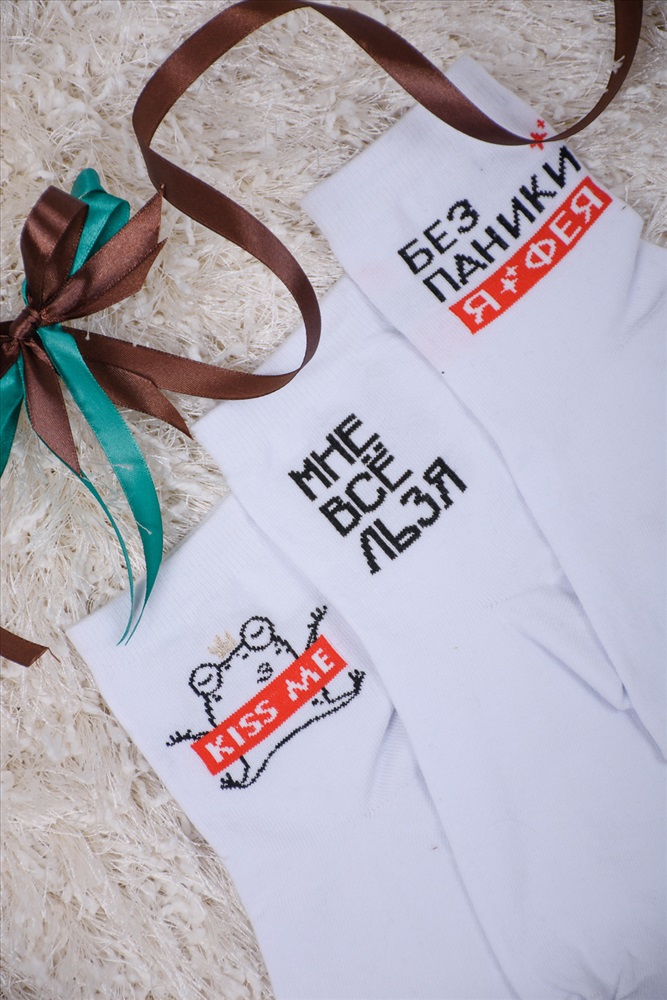 Состав: 70% х/б 22% ПА 6% ПП 2% эластан Модель: Носки женские Дива (набор 3 пары) Тип товара: носки высокие Материал: чулочно-носочный трикотаж | чулочно-носочный трикотаж Бренд: Amichevole Berchelli НДС: 22% Рейтинг: Рейтинг 4 и выше Рисунок: надпись | зверюшки Сезонность: лето | осень | весна | зима Стиль: повседневный Набор оригинальных женских носочков с надписями. В упаковке 3 пары - по 1 паре каждого вида. Упаковка - пакет Таблица размеров и веса