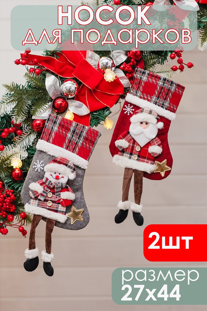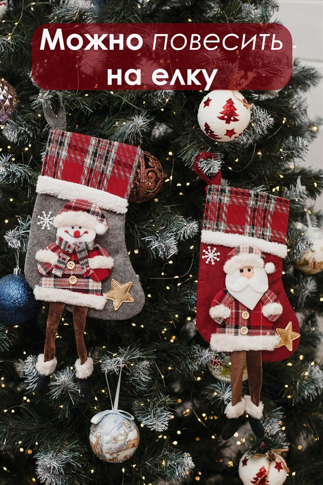 Модель: Новогодние носки для подарка Дед мороз и Снеговик 2 шт Тип товара: носок для подарков Бренд: Iv-trik-stail Подарочный носок‑сапожок это одновременно милый декор и удобная, экологичная упаковка для новогодних презентов. Корпус выполнен из плотной ткани. Аппликация олень или мишка вырезана и сшита из фетра, дополнена декоративной строчкой, помпонами и элементами, придающими лицам животных выразительность и объём. Главная фишка модели висячие ножки. Ножки добавляют динамики при подвешивании и создают игривый акцент на камине, поручне или ёлке. Верхний край снабжён петлёй для подвеса. Это отличный выбор для семейной упаковки, корпоративных наборов и тематических подарков. Носок выглядит как самостоятельный подарок. Сапожек новогодний не просто упаковка: он сам по себе становится частью подарка и может использоваться снова и снова. Таблица размеров и веса