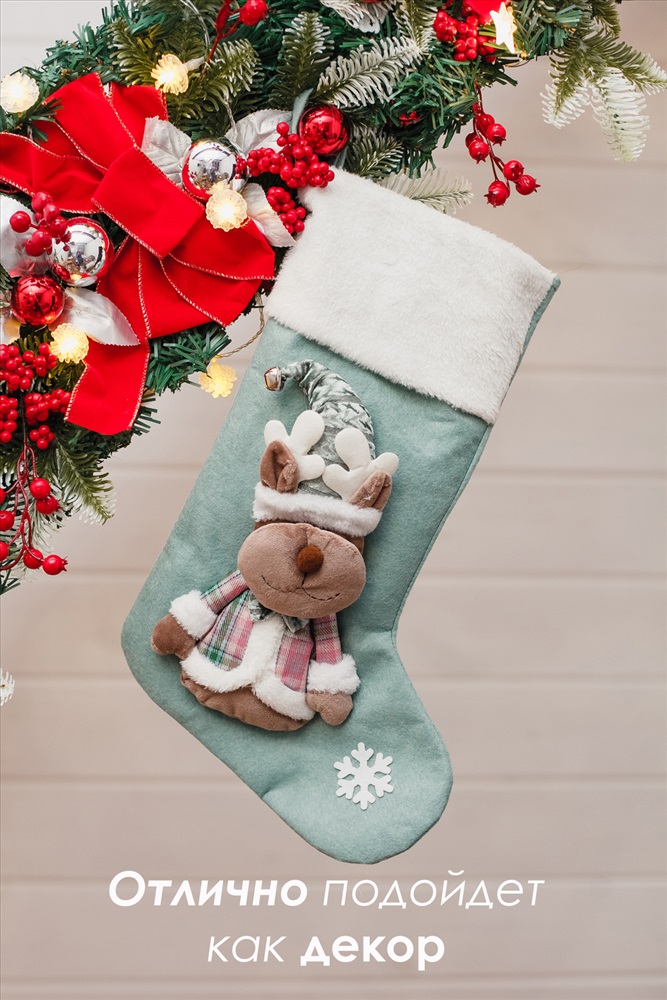Рисунок: новогодний Подарочный носок‑сапожок это одновременно милый декор и удобная, экологичная упаковка для новогодних презентов. Корпус выполнен из плотной ткани. Аппликация олень или мишка вырезана и сшита из фетра, дополнена декоративной строчкой, помпонами и элементами, придающими лицам животных выразительность и объём. Главная фишка модели висячие ножки. Ножки добавляют динамики при подвешивании и создают игривый акцент на камине, поручне или ёлке. Верхний край снабжён петлёй для подвеса. Это отличный выбор для семейной упаковки, корпоративных наборов и тематических подарков. Носок выглядит как самостоятельный подарок. Сапожек новогодний не просто упаковка: он сам по себе становится частью подарка и может использоваться снова и снова.