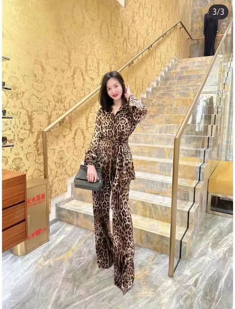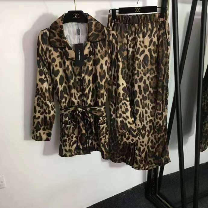 новый костюм, рубашка с длинными рукавами и шнуровкой на талии с леопардовым принтом + эластичные широкие брюки с высокой талией, кофейного цвета, S-XL, [размер M, ширина плеч 37, обхват груди 102, длина рукава 59 , длина одежды 72; талия 66, резинка, длина 97