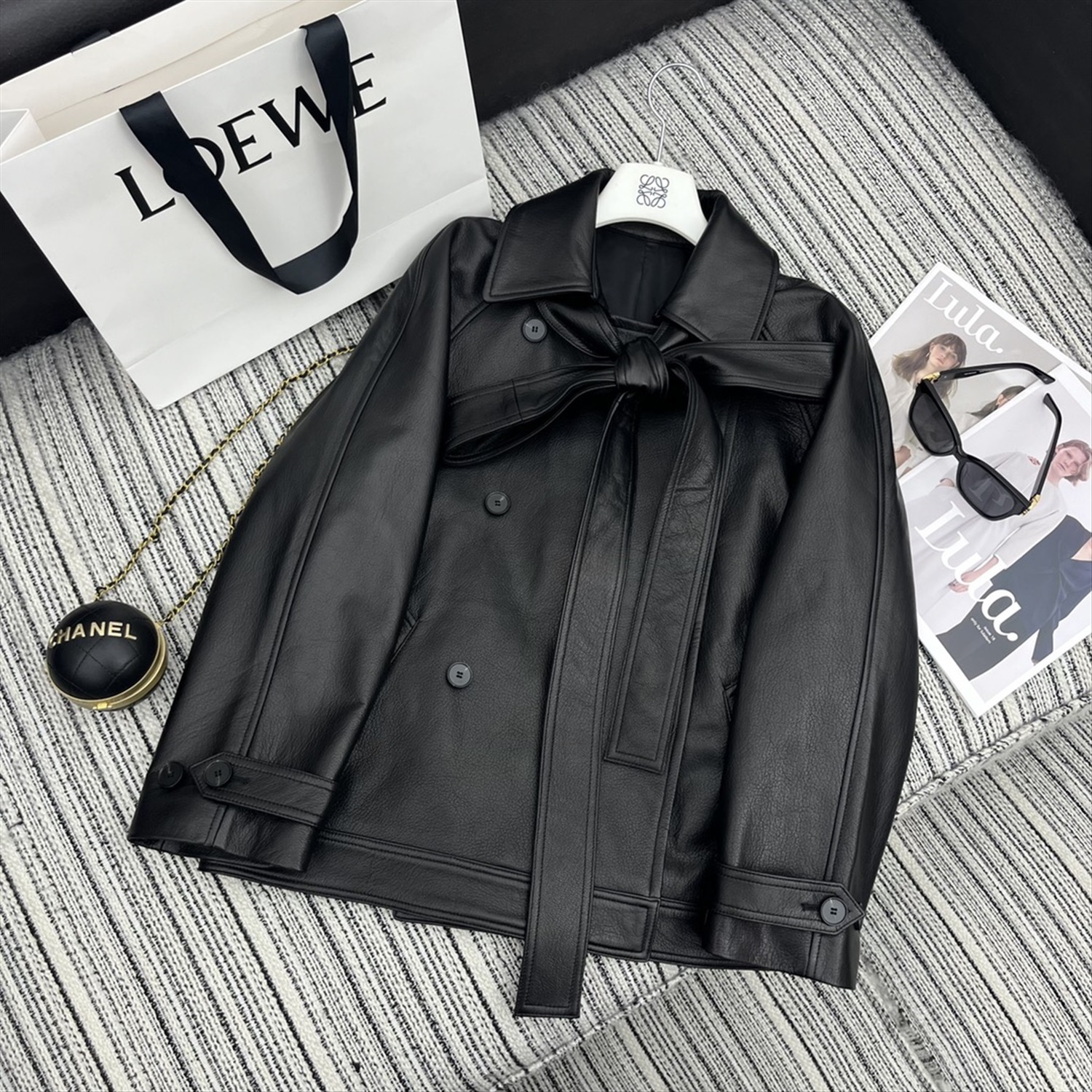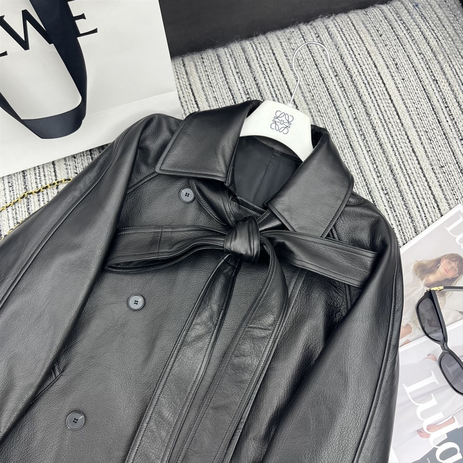 Новый стиль, куртка из овчины с длинными рукавами и лацканами, свободный стиль, кожаный галстук с бантом, дизайн 100% Овчина высшего качества YB1:1 по индивидуальному заказу
