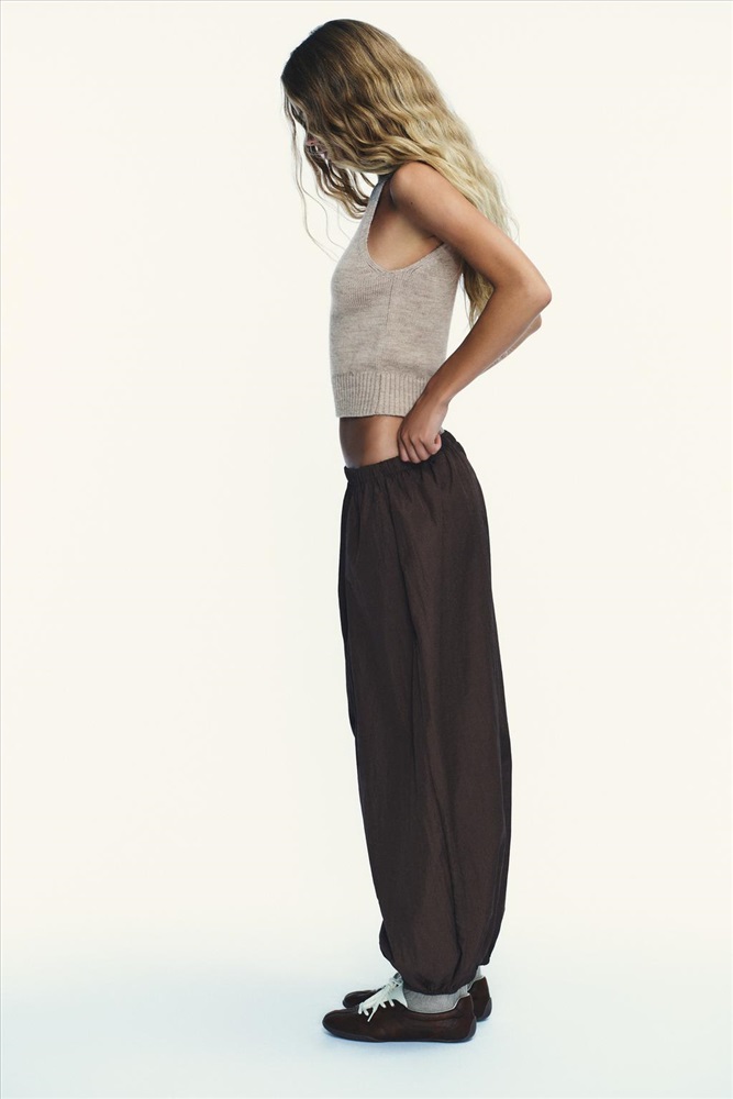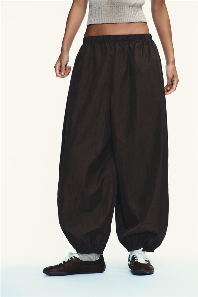Mid-waist trousers with an elasticated waist. Concealed side seam pockets. Elasticated, blouson-style hems. COMPOSITION, CARE & ORIGIN COMPOSITION OUTER SHELL 100% polyamide Which contains at least: OUTER SHELL 100% RCS certified recycled polyamide CERTIFIED MATERIALS RCS CERTIFIED RECYCLED POLYAMIDE This fibre is made from polyamide waste recovered from other productions and other waste products, such as fishing nets. Transforming waste into new materials helps limit the extraction of raw materials. It is certified to the Recycled Claim Standard (RCS), which verifies the recycled content and tracks it from source to final product. Certified by Intertek 193341 More information CARE Caring for your garments to extend their useful life. Lower temperature washes and delicate spin cycles are gentler on garments and help to protect the colour, shape and structure of the fabric.