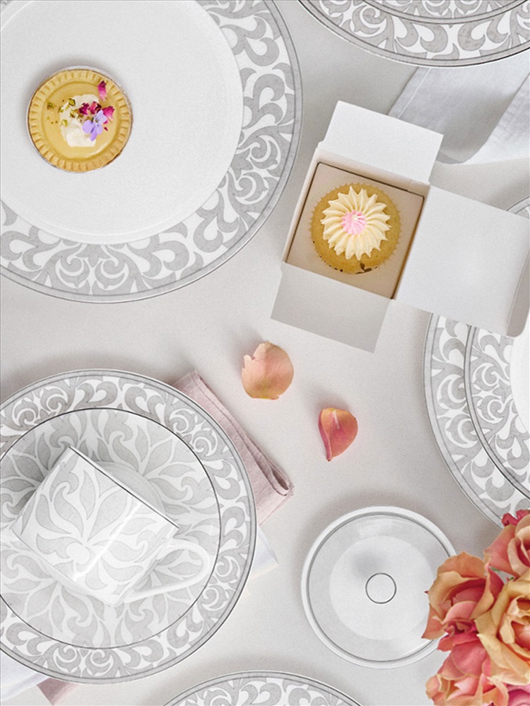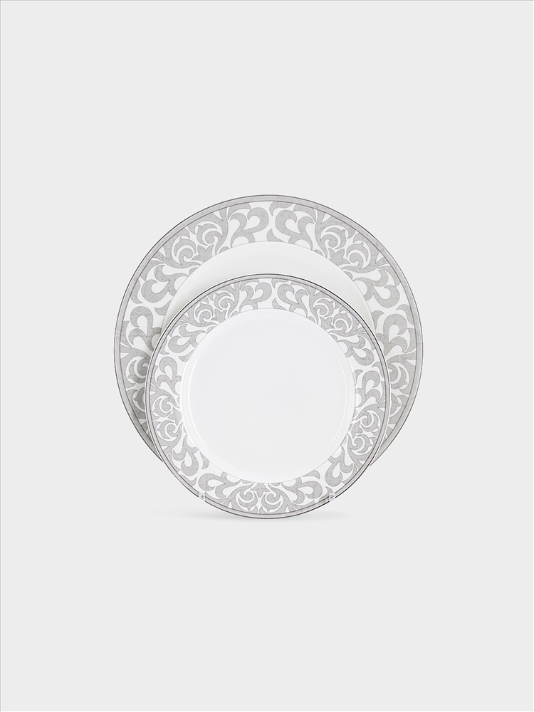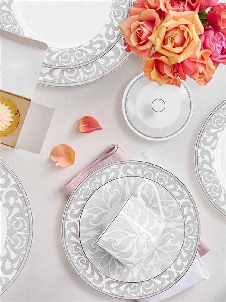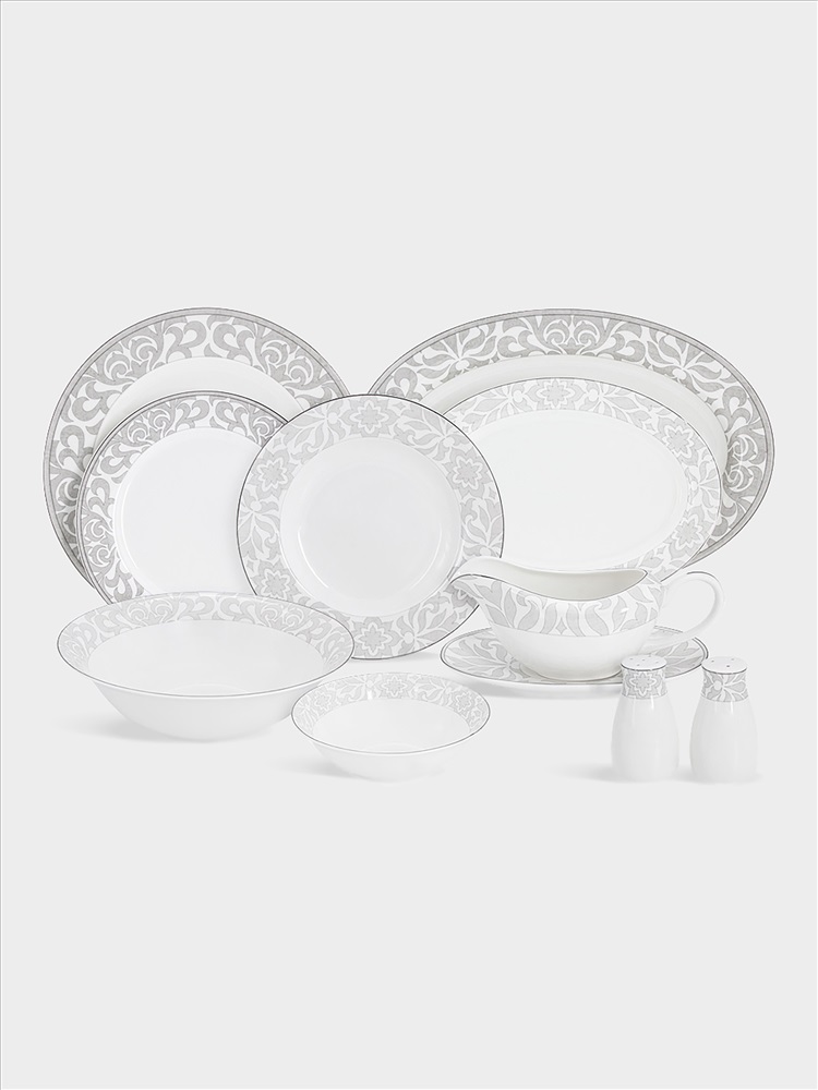 Штрихкод: 4607947167832 Сезон: ВСЕСЕЗОННЫЙ Коллекция: РЕГУЛЯРНАЯ Сервиз обеденный, 6 перс, 27 пр, фарфор F, бело-серый, с серебристым кантом, Узор, Isadora. Материал: фарфор Fine Bone China. Мыть тёплой водой с применением жидких моющих средств. Не использовать в посудомоечной машине. Можно использовать в СВЧ. Комментарии к товару