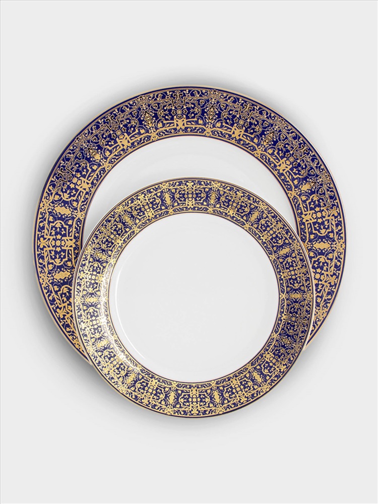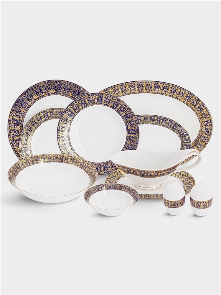 Коллекция: РЕГУЛЯРНАЯ Сервиз обеденный, 6 перс, 27 пр, фарфор P, бело-синий, с золотистым орнаментом, Byzantium. Материал: фарфор Рorcelain. Мыть тёплой водой с применением жидких моющих средств. Не использовать в СВЧ и в посудомоечной машине.