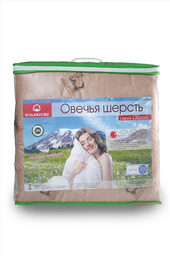 Сезонность: лето | осень | весна | зима Размеры: 1,5сп - 140х205см, 2сп - 170х205см, евро1 - 200х220см, евро2 - 220х240см, ткань - тик, 100% хлопок с пуходержащей синтетической пропиткой, наполнитель - шерсть овечья 50%, полиэфирное волокно 50%, плотность наполнителя - 300гр/м, упаковка - чемодан на молнии. Одеяла из овечьей шерсти являются источником сухого, полезного тепла, обладают антибактериальными свойствами, прочны и практичны в использовании.
