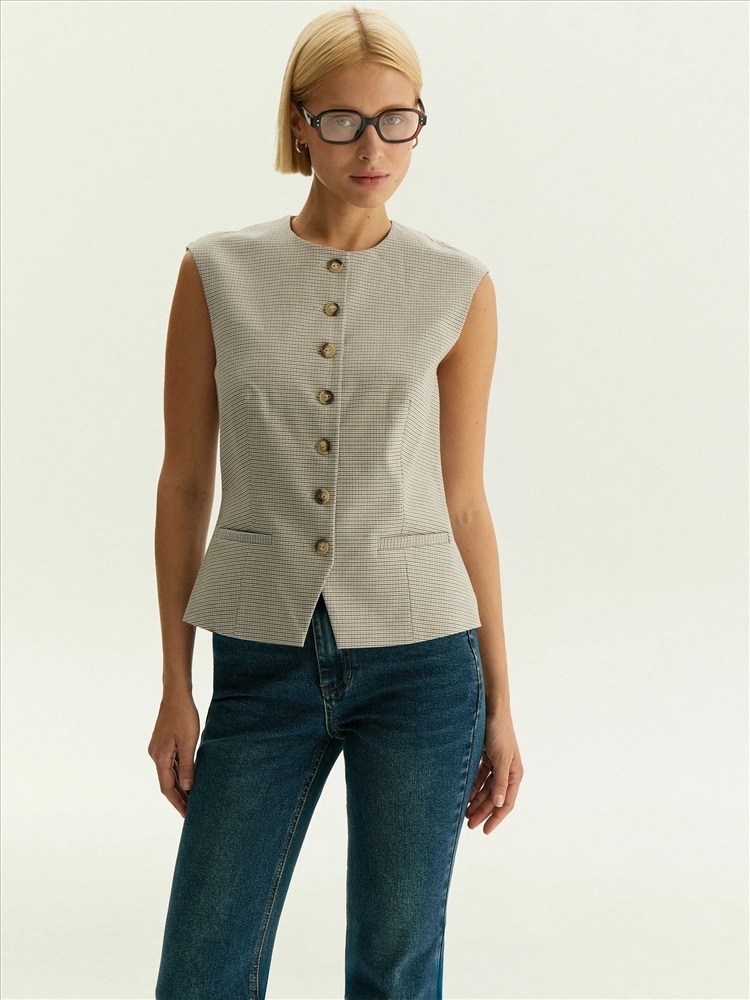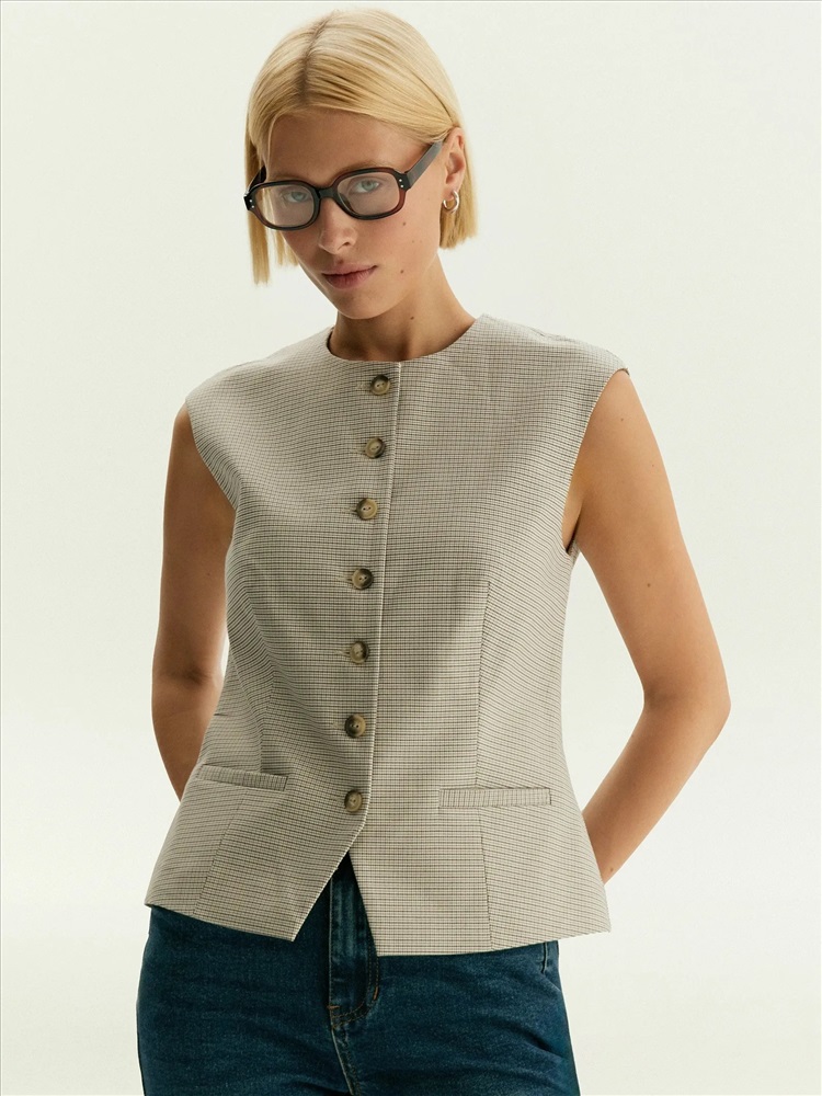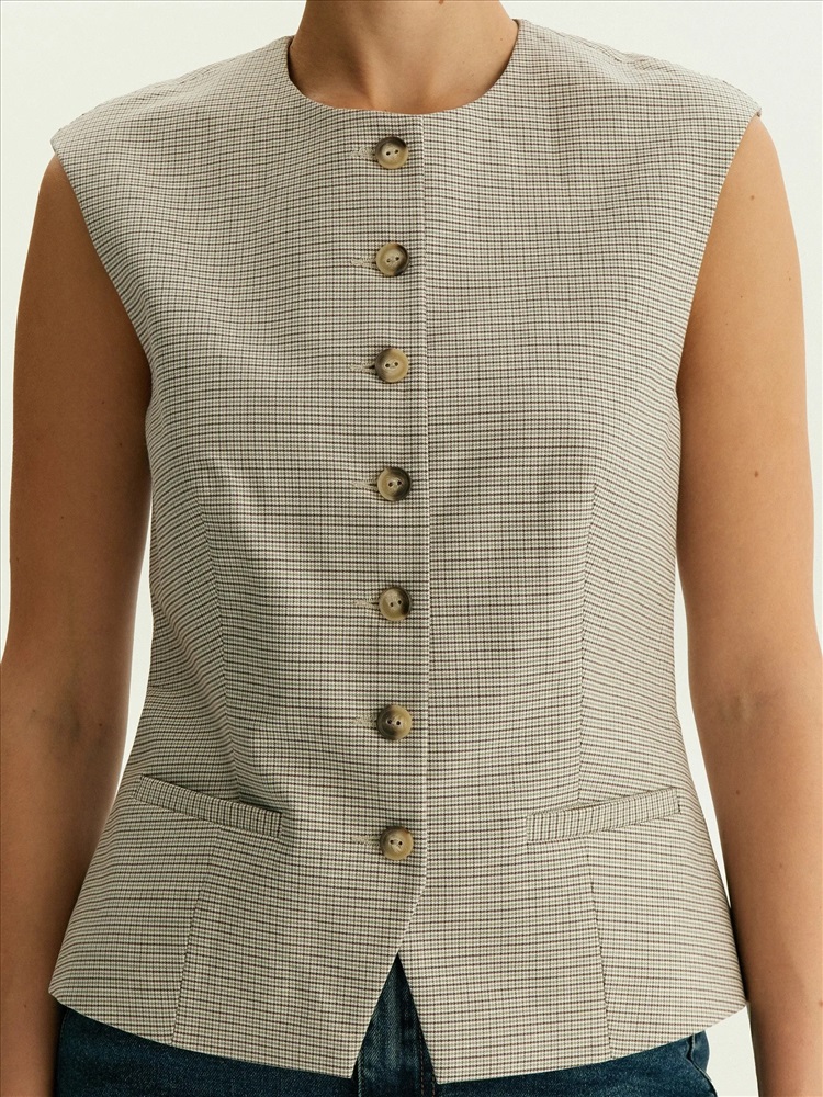 Однобортный жилет с принтом гусиная лапка, GL118/cage