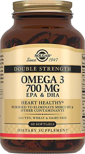 Двойная Омега-3 700 мг ЭПК и ДГК содержит ПНЖК Омега-3 - 1400 мг (в 2-х капсулах, рекомендуемый приём) и производится по уникальной технологии молекулярной дистилляции, методу, который позволяет удалить соли тяжелых металлов из рыбьего жира.