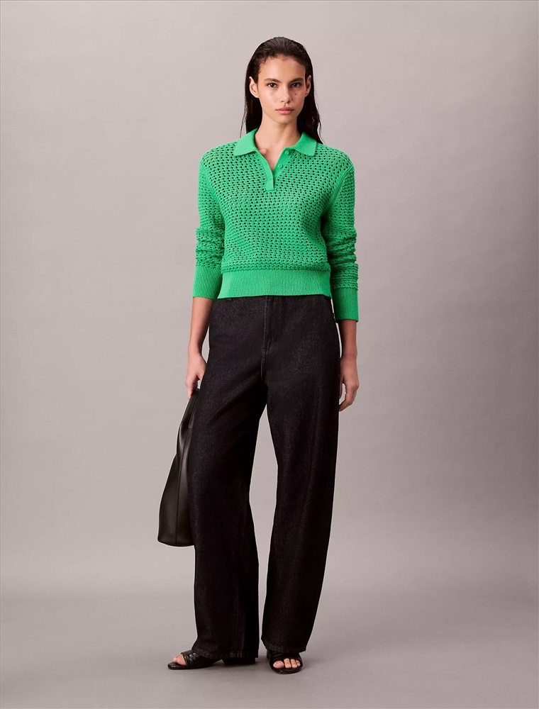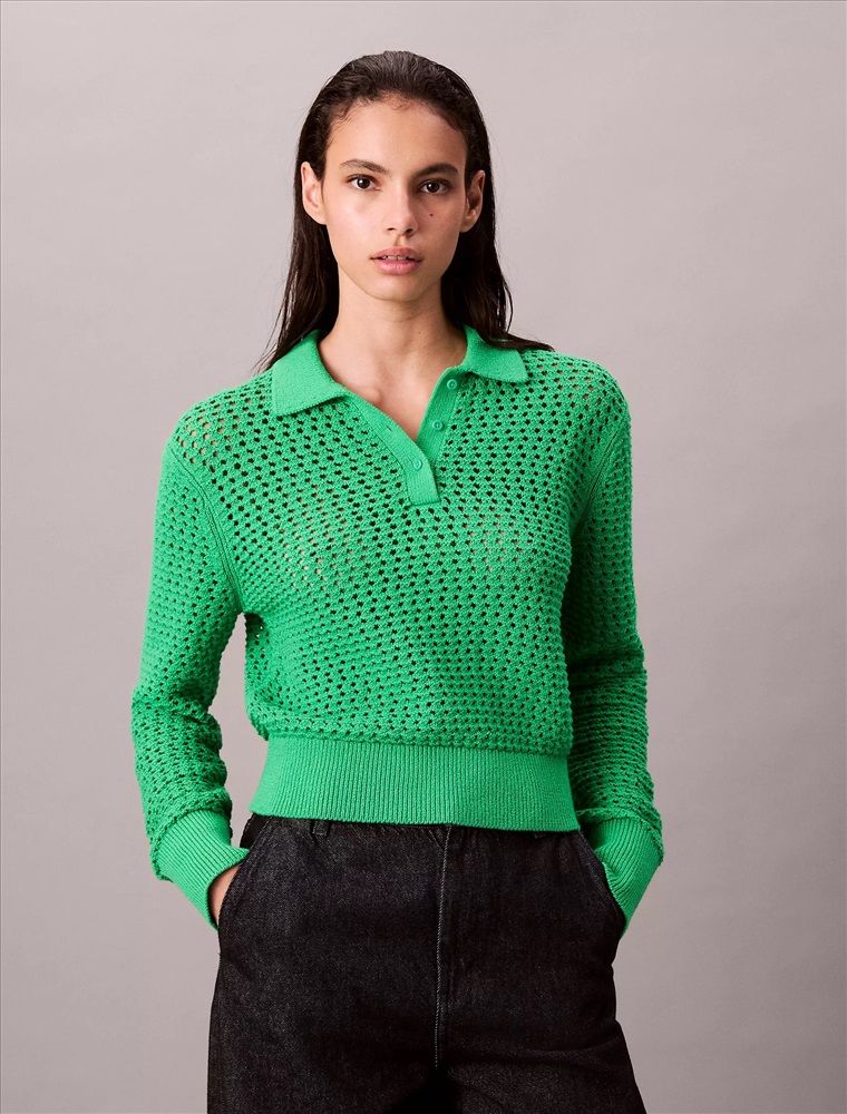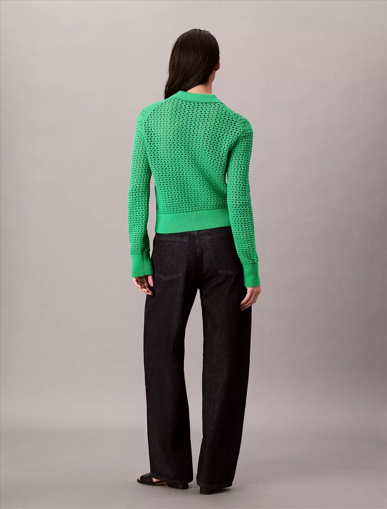 Open Stitch Polo Sweater