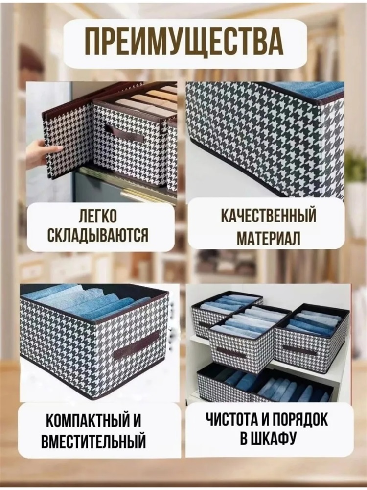 Модель: Органайзер 60269 Тип товара: органайзер в шкаф Бренд: Натали Суслова Размер: 402720 см. Органайзер для вещей будет полезен в каждом доме и поможет создать идеальную систему хранения в шкафу, на полках или в тумбочке. Складные органайзеры для одежды являются многофункциональными и универсальными. Органайзеры для хранения отлично держат форму. Стильные контейнеры для вещей имеют красивый дизайн, который впишется в любой интерьер и украсит пространство. Таблица размеров и веса