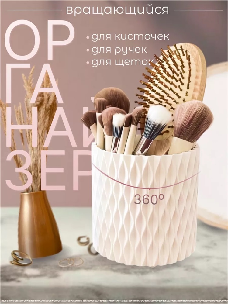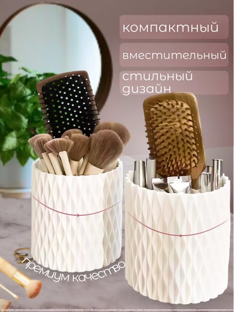 Бренд: Натали Суслова Представляем вам удивительно функциональный органайзер настольный вращающийся для хранения косметики, кистей, расчесок и других принадлежностей. Этот органайзер станет идеальным решением для организации вашего косметического столика или рабочего места. С его помощью вы сможете легко и удобно хранить и организовывать все необходимые аксессуары. Благодаря вращающемуся механизму, вы сможете легко найти нужную вам кисть, расческу или косметический продукт, не тратя время на поиск. Благодаря своему компактному размеру, органайзер легко помещается на любой стол и не занимает много места.