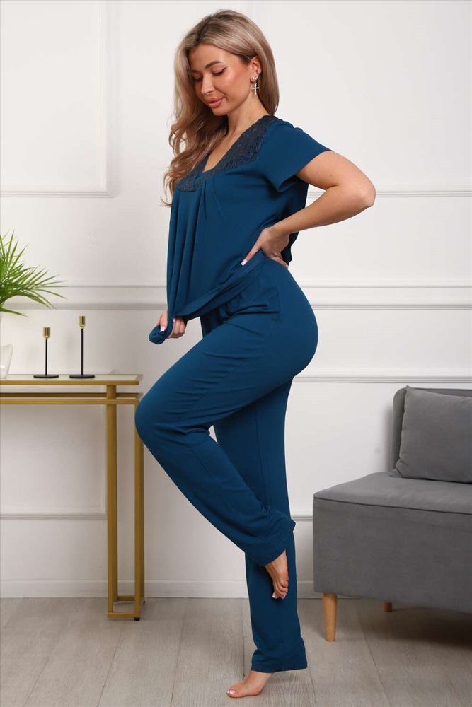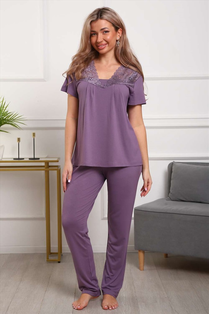 Состав: Вискоза 92% Лайкра 8% Модель: П183вз пижама женская Тип товара: пижама с брюками Материал: вискоза | вискоза Бренд: Marina Карман: без карманов Назначение: для дома НДС: 5% Особенности: на резинке Отделка: с кружевом Посадка: высокая посадка Рисунок: однотонные Рукав: короткий рукав Сезонность: лето | осень | весна | зима Силуэт: прямой | свободный Стиль: домашний Воротник: без воротника Застежка: без застежки Пижама женская из вискозы. Состоит из туники и брюк. Верх прямого силуэта, чуть расклешённый к низу, ниже середины бедра. Рукав короткий. Горловина V-образной формы, отделана кружевом. Низ прямой. Брюки прямые, зауженные к низу. Пояс цельнокроеный, на естественном месте. Таблица размеров и весатуника