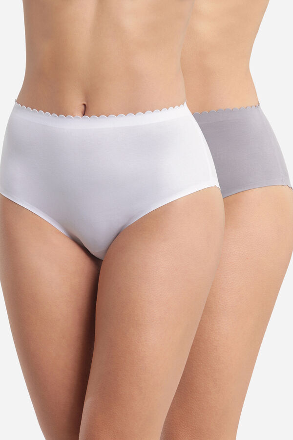 Pack de 2 bragas tipo slip de algodón cortados al laser sin costuras para una máxima invisibilidad bajo la ropa. Tejidos cualitativos y ultra suaves sin etiquetas para reforzar el confort. Disponible en colores básicos y de temporada.