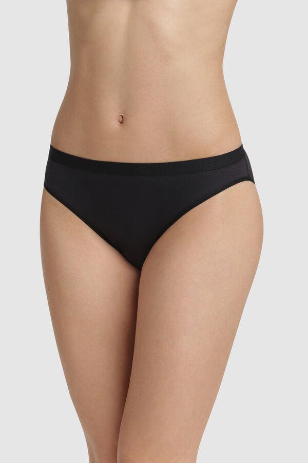 Pack de 3 braguitas de algodón elástico coloridas y muy cómodas. Para evitar que se marquen bajo la ropa y para un extra de confort, hemos usado una cinturilla ancha con el logo de DIM. Elástico plano y costuras recubiertas en las piernas.