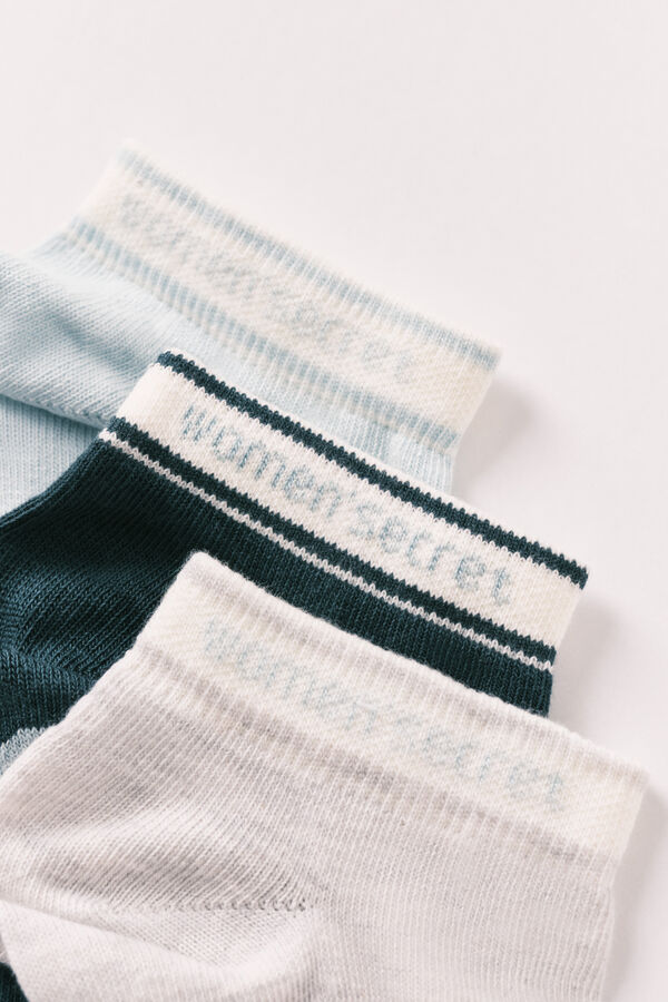Pack de 3 calcetines cortos con estampado posicionado de corazón, fabricados en algodón suave y elástico. Diseñado para ofrecer comodidad y estilo durante tus actividades diarias.