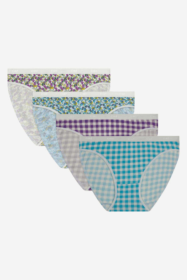 Pack de 4 bragas tipo slip de algodón elástico con diseños juveniles y divertidos, así como colores básicos. La suavidad y confort del algodón y la cinturilla ancha. Cinturilla plana con logo y elástico invisible en las piernas.