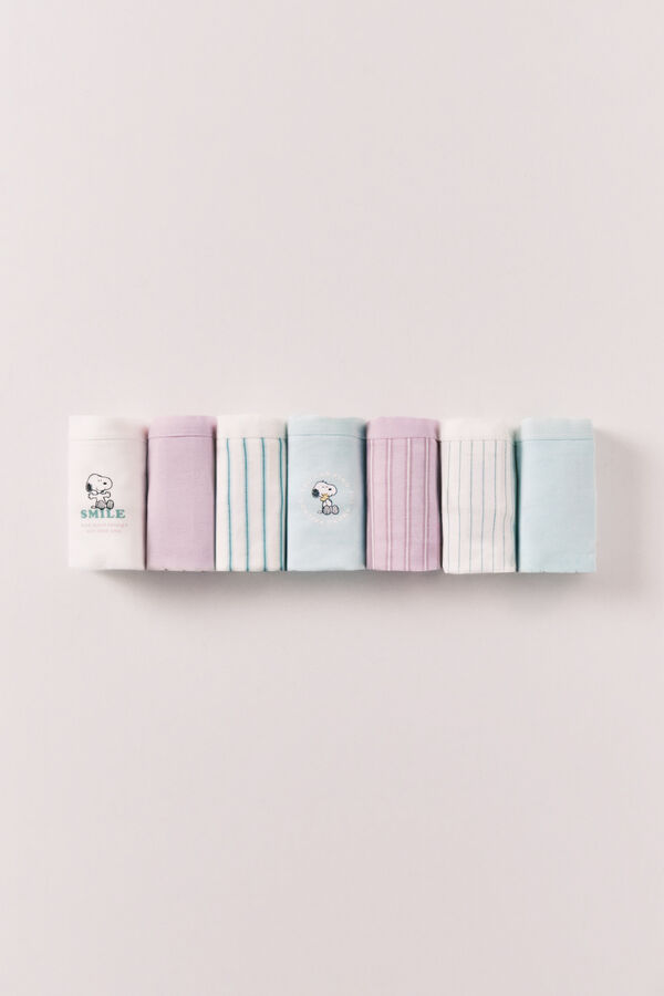Pack de 7 bragas brasileñas de algodón con mix de estampado de rayas y otras con estampado de Snoopy. Diseñadas para ofrecer comodidad y estilo durante tus actividades diarias.