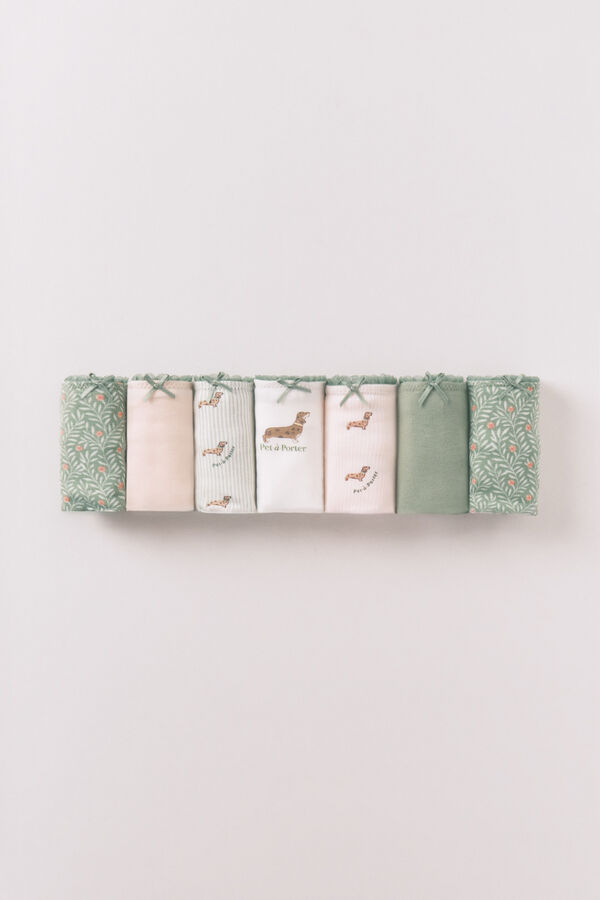 Pack de 7 tangas de algodón con mix de lisas y otras con estampados femeninos variados. Diseñadas para ofrecer comodidad y estilo durante tus actividades diarias.
