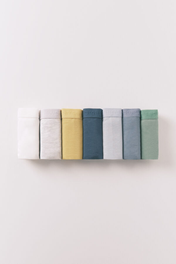 Pack de 7 tangas de tacto súper suave, lisas en colores variados. Diseñadas para ofrecer comodidad y estilo durante tus actividades diarias.