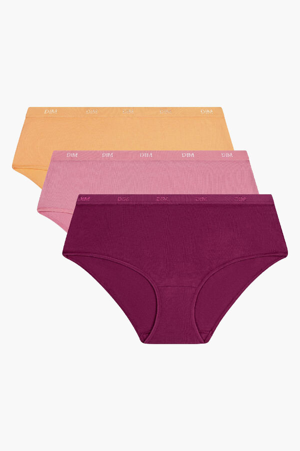 Pack de 3 bóxer de algodón elástico coloridas y muy cómodas. Para evitar que se marquen bajo la ropa y para un extra de confort, hemos usado una cinturilla ancha con el logo de DIM. Elástico plano y costuras recubiertas en las piernas.