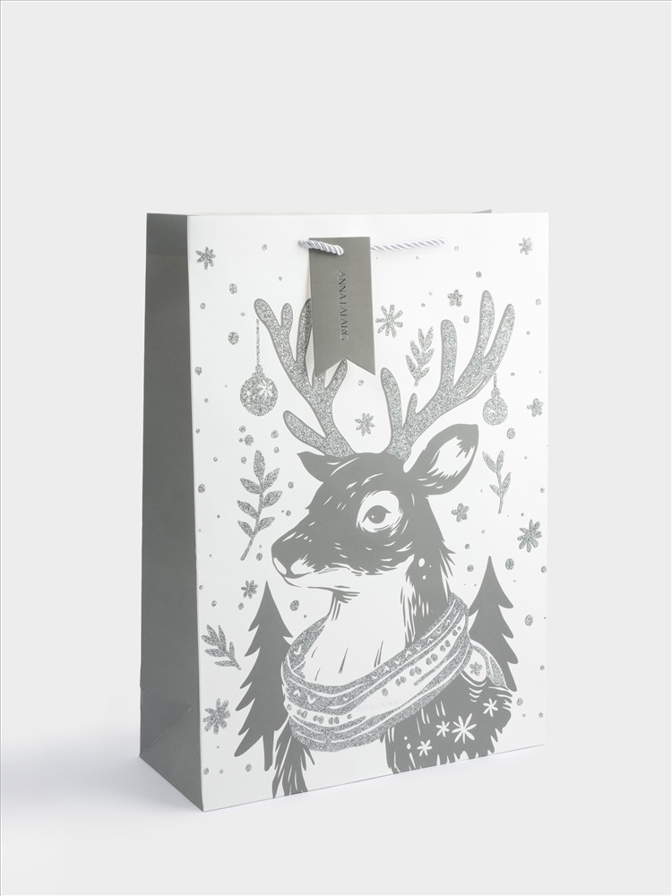Пакет подарочный, 30х42 см, бумага, белый, Олень в шарфе, Maral grey