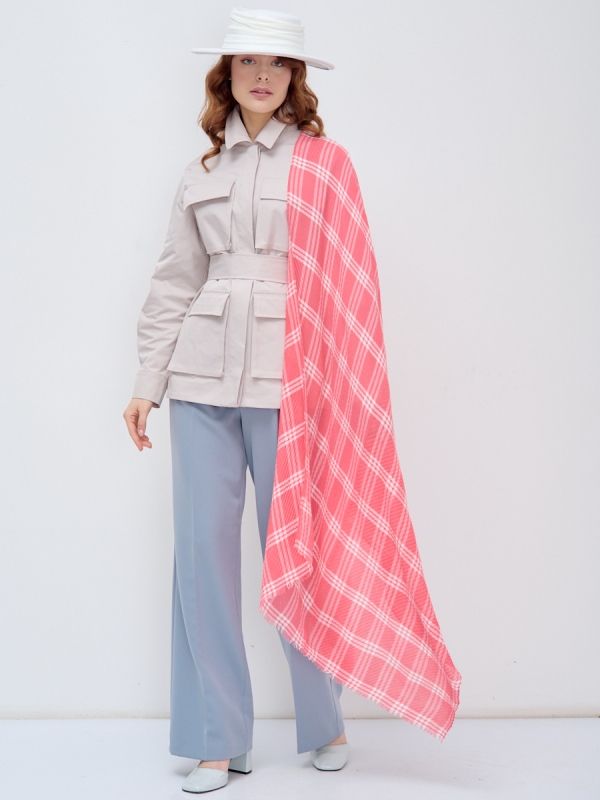 Большой, красивый палантин с необычной выработкой по всему полотну изделия. Края изделия аккуратно закрыты строчкой. Только ручная стирка.