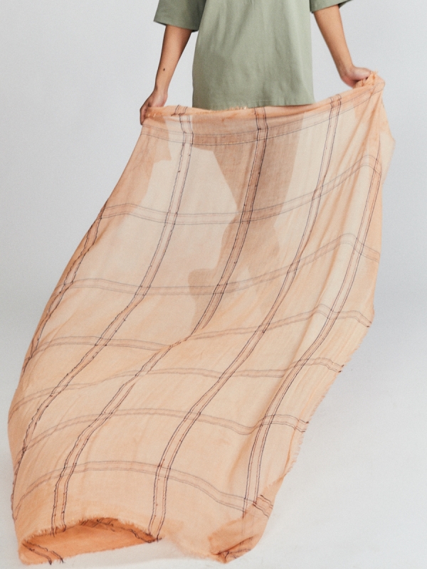 Размер: 90 x 190 cм Состав: Вискоза, Хлопок, Лен Состав: Лен 25% Хлопок 45% Вискоза 30% Цвет: Лососевый Принт: Клетка Большой, палантин окрашенный по принципу "вареный хлопок". Все полотно изделия украшено декоративной мережкой.Только ручная стирка. Комментарии к товару
