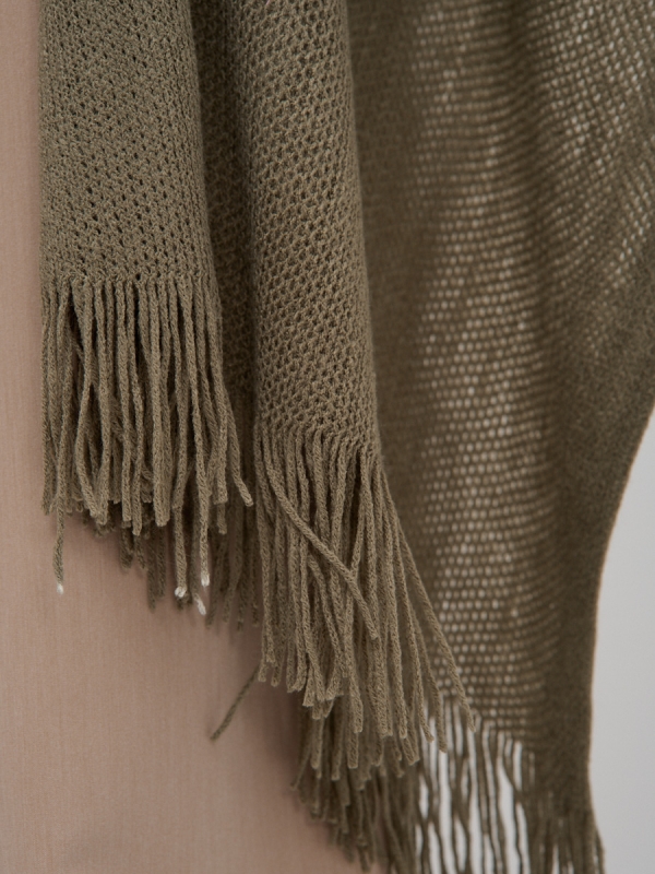 Размер: 180 x 70 см Состав: Шерсть 45% Акрил 55% Цвет: Хаки Принт: Однотонный Большой, красивый вязаный палантин. За счет неплотной вязки может легко изменить свой размер. Изделие украшено длинной бахрамой. Только ручная стирка. Сушить в горизонтальном, расправленном виде. Комментарии к товару