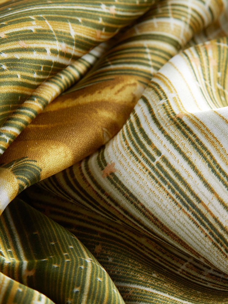 Цвет: Бронза, Желтый, Зеленый, Зеленый мох Состав: 45% полиэстер, 35% вискоза, 20% шелк Состав: Вискоза, Полиэстер, Шелк Размер: 90 х 180 см Принт: Абстракция Сезон: Осень, Весна Большой, мягкий, тонкий и очень нежный палантин с рисунком. Только ручная стирка. Комментарии к товару