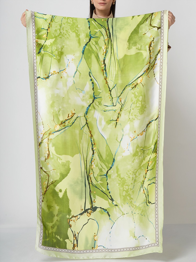 Цвет: Желтый, Зеленый, Зеленый мох Состав: 45% полиэстер, 35% вискоза, 20% шелк Состав: Вискоза, Полиэстер, Шелк Размер: 90 х 180 см Принт: Абстракция Сезон: Осень, Весна Большой, мягкий, тонкий и очень нежный палантин с рисунком. Только ручная стирка. Комментарии к товару