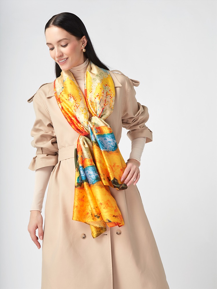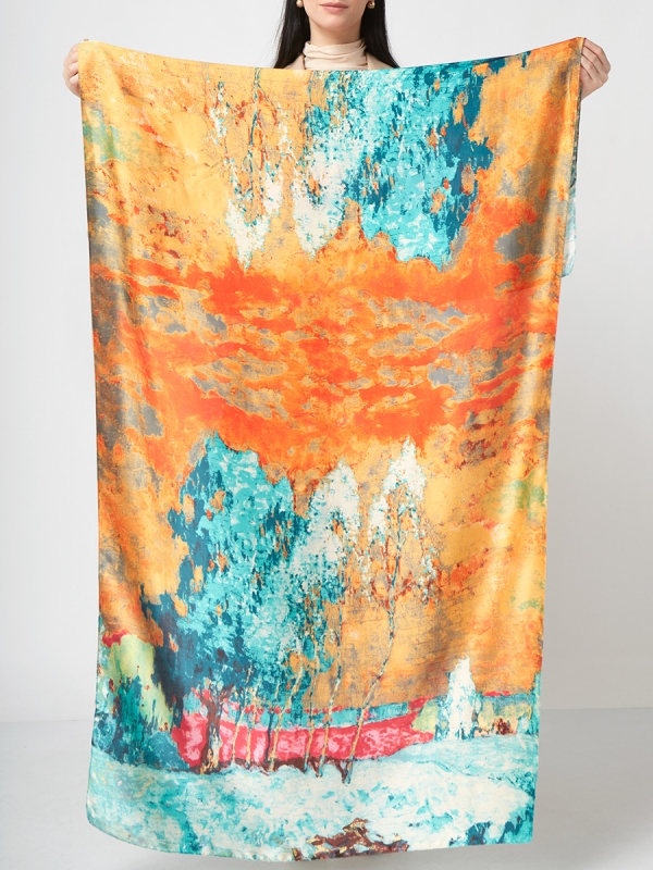 Цвет: Бирюзовый, Желтый, Золотой, Оранжевый Состав: 45% полиэстер, 35% вискоза, 20% шелк Состав: Вискоза, Полиэстер, Шелк Размер: 90 х 180 см Принт: Абстракция Сезон: Осень, Весна Большой, мягкий, тонкий и очень нежный палантин с рисунком. Только ручная стирка. Комментарии к товару