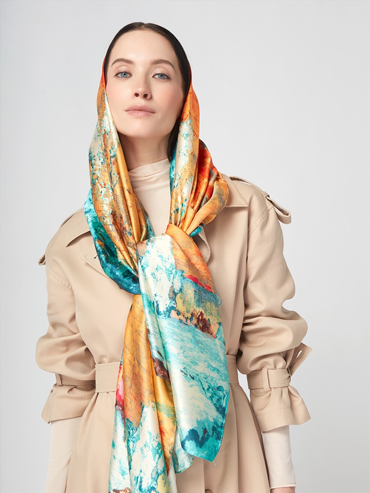 Цвет: Бирюзовый, Голубой, Желтый, Золотой, Изумрудно-зеленый, Оранжевый Состав: 45% полиэстер, 35% вискоза, 20% шелк Состав: Вискоза, Полиэстер, Шелк Размер: 90 х 180 см Принт: Абстракция Сезон: Осень, Весна Большой, мягкий, тонкий и очень нежный палантин с рисунком. Только ручная стирка. Комментарии к товару