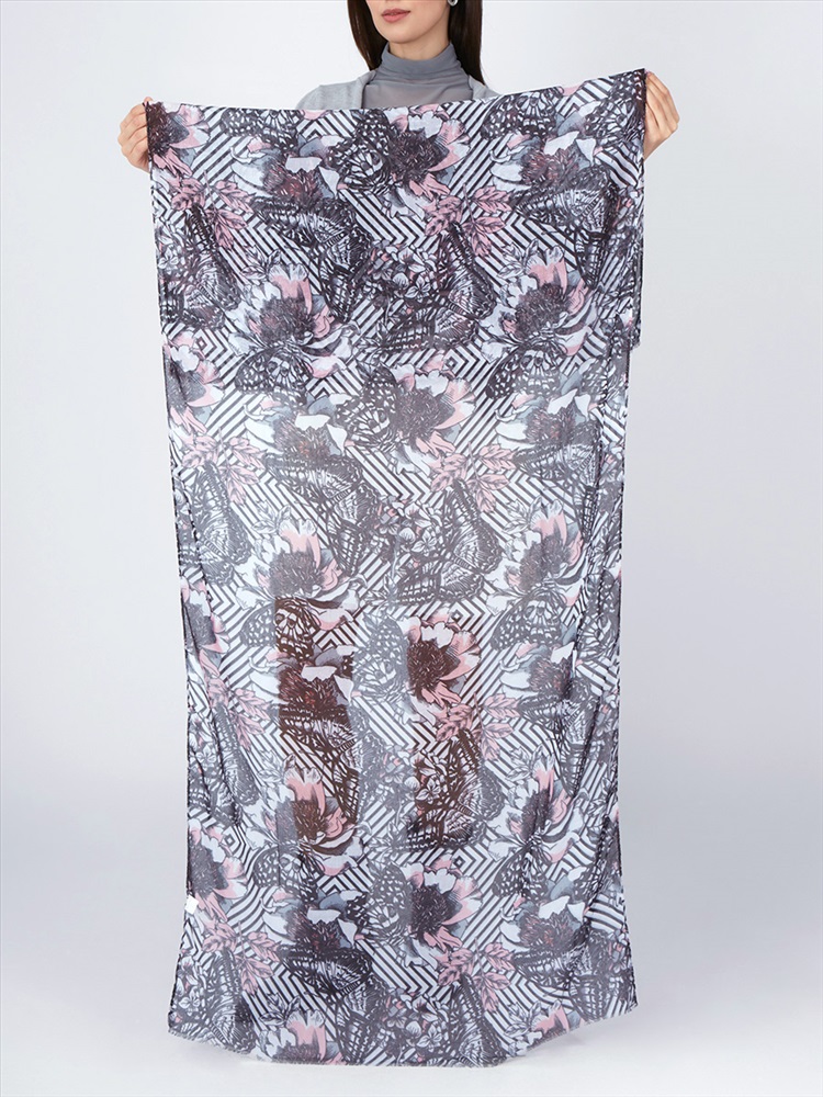 Размер: 75 х 180 см Большой, мягкий, тонкий и очень нежный палантин с рисунком в стиле арт-деко. Только ручная стирка.