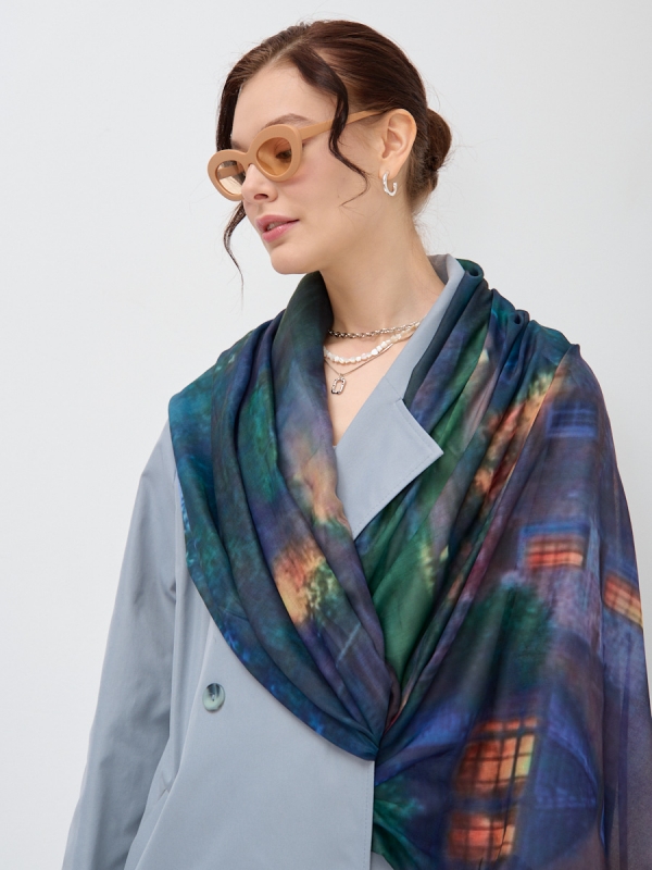 Состав: Вискоза, Хлопок, Шелк Размер: 80 x 180 cм Состав: Шелк 15% Хлопок 45% Вискоза 40% Цвет: Голубой, Зеленый, Синий, Сиреневый, Фиолетовый Комментарии к товару