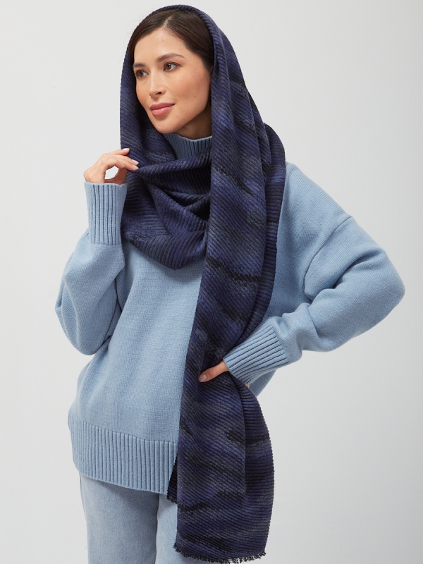 Цвет: Графит, Синий, Черный Сезон: Осень, Зима Состав: Шерсть Размер: 65 x 160 cм Принт: Переход тона Большой, мягкий, двусторонний палантин с принтом. Края палантина украшены бахромой. Только ручная стирка. Комментарии к товару