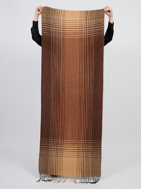 Цвет: Горчичный, Желтый, Золотой, Кофейный, Коричневый Большой, мягкий, теплый двусторонний палантин с рисунком в стиле "арт-деко". Края изделия украшены кистями. Только ручная стирка.