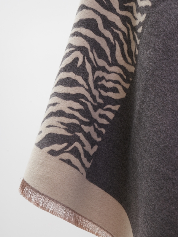 Большой, мягкий, теплый двусторонний палантин с принтом. Края изделия украшены кистями. Только ручная стирка.